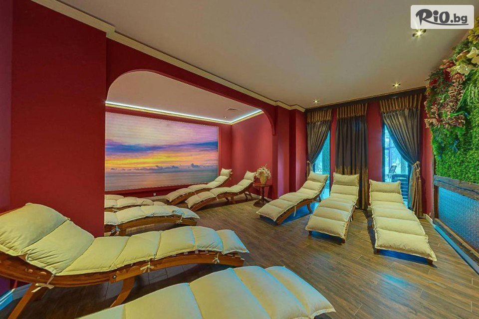 • Безплатно ползване на Уелнес център (10:00-19:00 ч.) - Отопляем вътрешен басейн с минерална вода (32-34°), финландска сауна, ледено ведро, ледена купа и фитнес център;