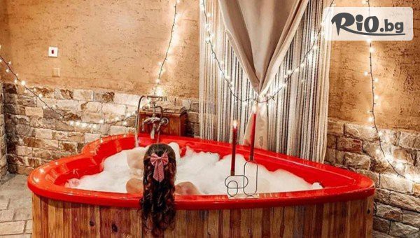 • Хидромасажна вана във формата на сърце в помещението.