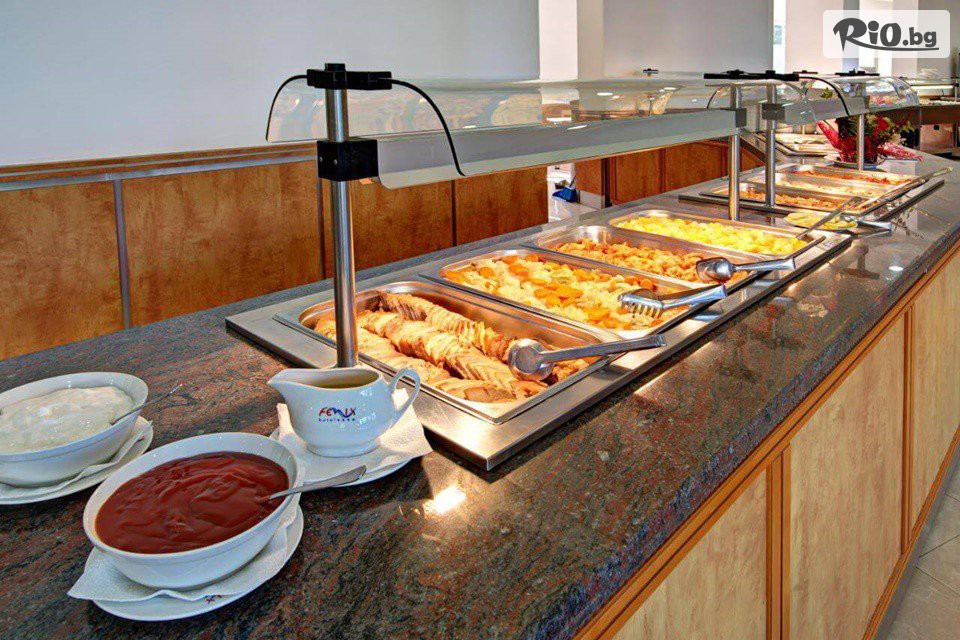 • Вечеря в ресторанта: 18:30 - 21:00ч. на блок маса - селекция от пресни салати и супи, богато разнообразие от български и международни ястия, вегетариански и месни ястия, паста, селекция от хлебни изделия, сладък бюфет с разнообразни десерти.