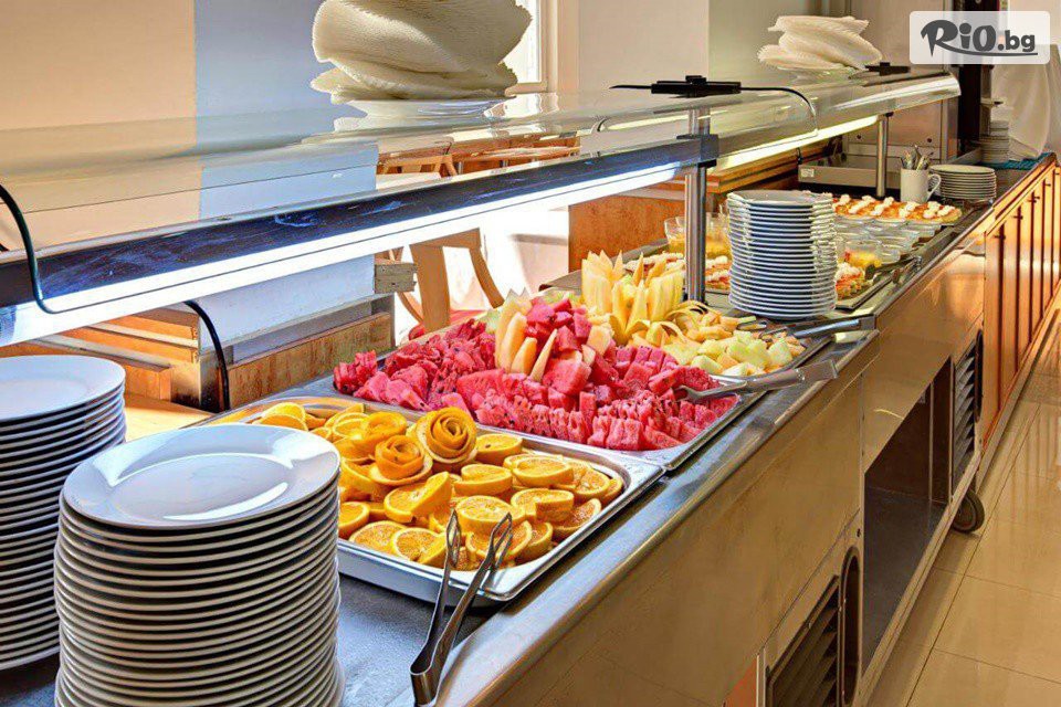 • Закуска в ресторанта: 07:30 - 10:00ч. на блок маса - разнообразие от топли и студени ястия, яйчени специалитети, разнообразие от млечни продукти, колбаси и сирена, селекция от хлебни изделия, зърнени храни, плодове.