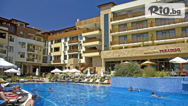 Почивка на първа линия в Свети Влас от 25 Август до 7 Септември! Нощувка за до шестима + закрити и открити басейни, и анимация, от Апартхотел Райска градина 4*
