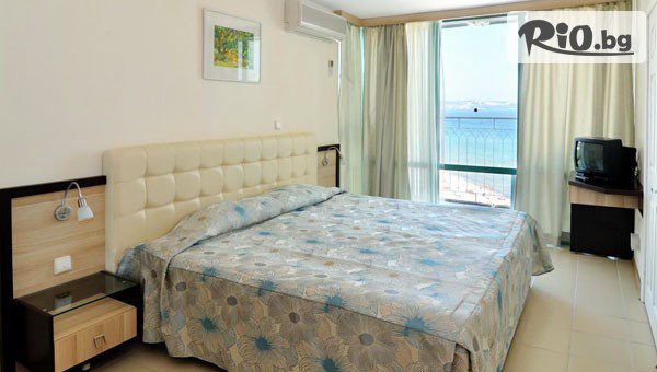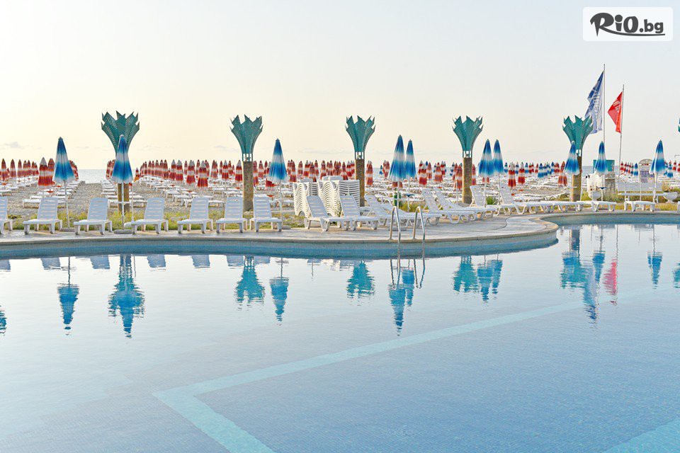 • Безплатно ползване на 1 чадър и 2 шезлонга на плажа (на стая), считано от 3-ти ред откъм морето до плажната алея (до изчерпване на наличните);
