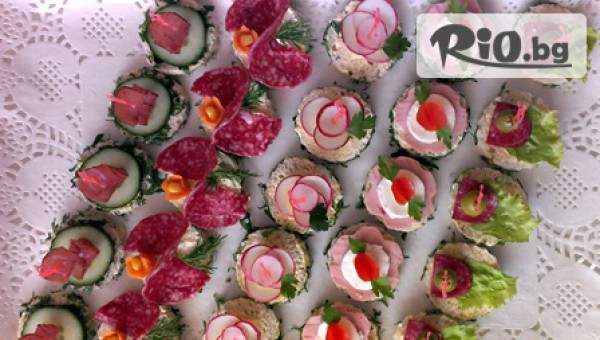 - 5 бр. тартелети с руска салата, салам, морков;