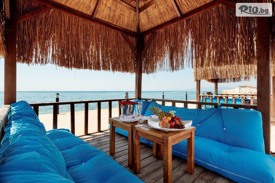 • Собствен пясачно-чакълест плаж и платформа. Шезлонги и плажни чадъри се ползват безплатно.