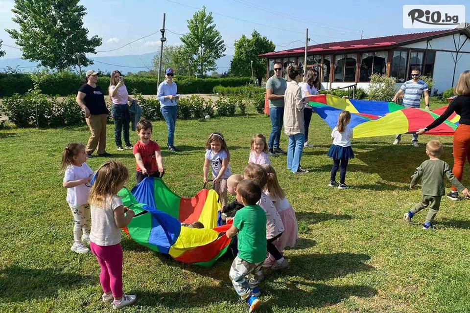 • Ползване на откритите тревни площи на базата, мишена за стрелба с лък, обръчи, въжета, федербал и забавни игри;
