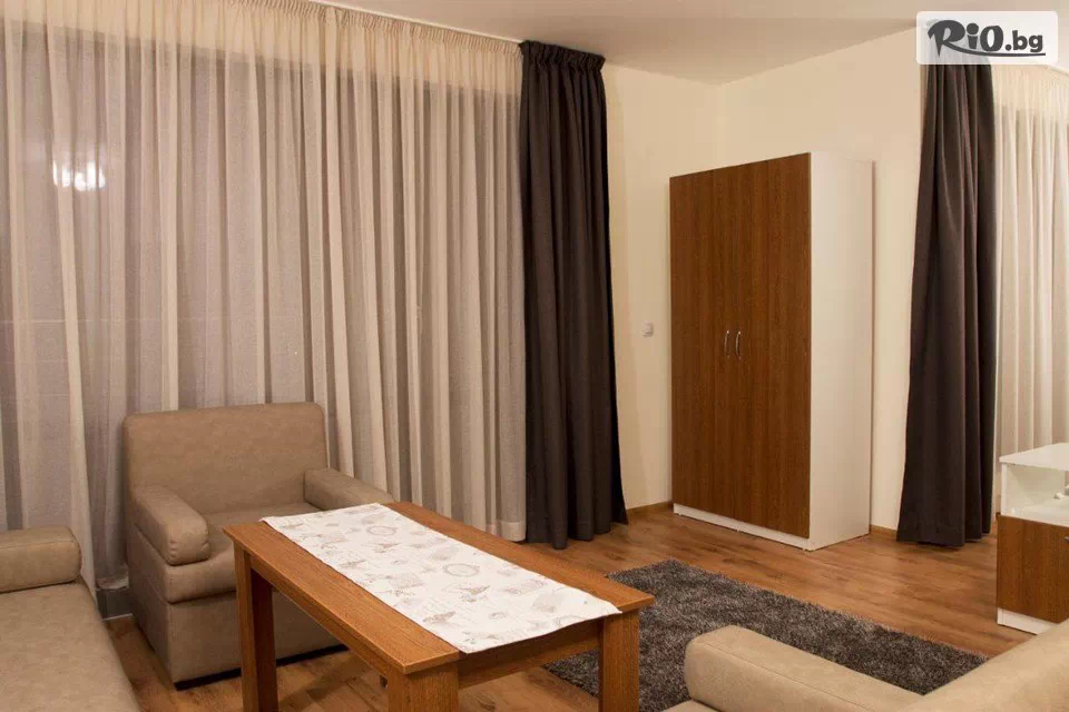 • За настаняване в апартамент или апартамент делукс - 5.11 €/10лв на ден на рецепция. Необходимо е да се заяви предварително при резервация.