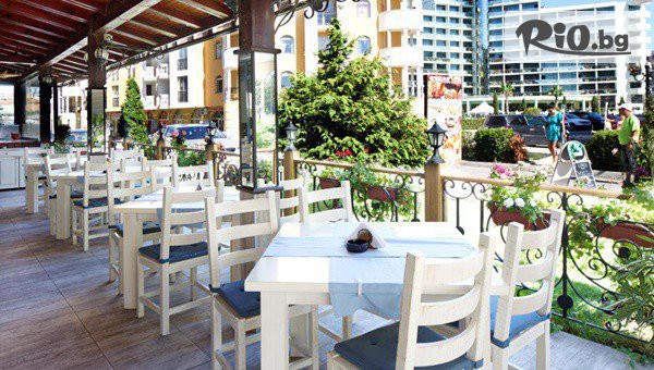 • Бар-Басейн: От 10:00 до 22:00 ч. предоставя кафе, чай, безалкохолни напитки, наливна бира, вино и сладолед, от 10:00 до 11:30 ч. сервира дребни сладки и соленки, сандвичи и плодове, от 15:00 до 17:00 ч. - Следобедна закуска - плодове, сладкиши, дребни сладки и соленки и сандвичи. Селекция от български и вносни алкохолни напитки - срещу допълнително заплащане.