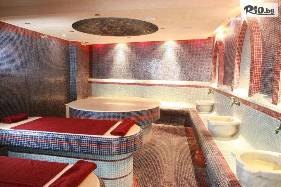 • Вътрешен отопляем басейн със солна електролиза и външно топло джакузи, сауна, парна баня, фитнес;
