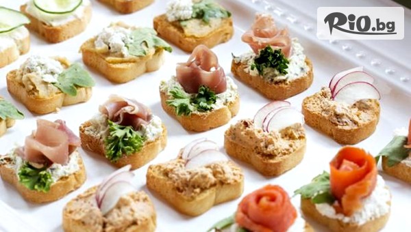 • 20 бр. мини сандвичи с домашен пастет, чери доматче и каперс;