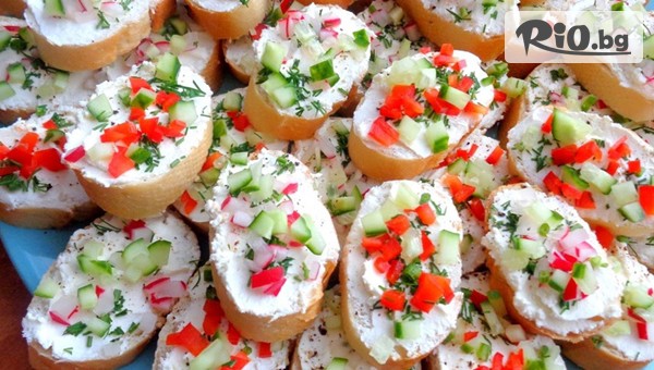 • 20 бр. мини сандвичи с паста, сирене Филаделфия и чери доматче;