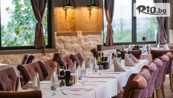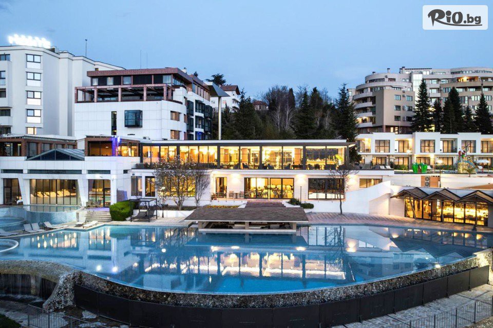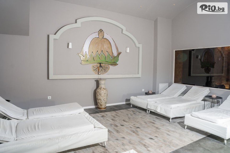 • СПА пакет: открит и закрит басейн с минерална вода, външни джакузита, билкова сауна, финландска сауна, хамам, парна баня, приключенски душ, йодна стая, зона за релакс, фитнес;