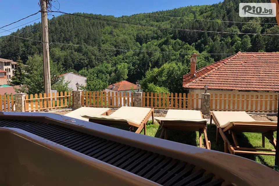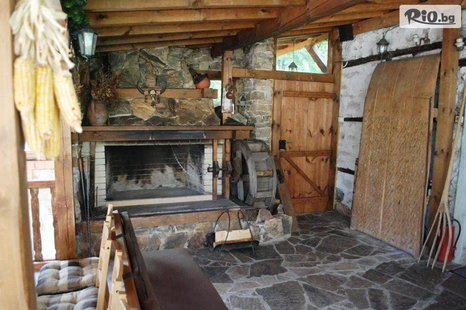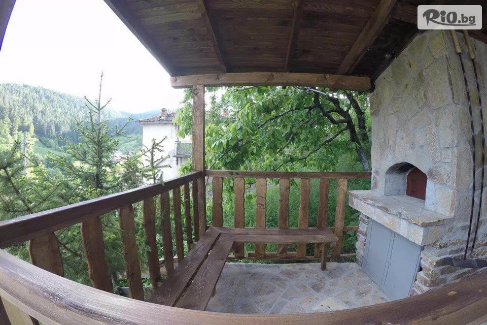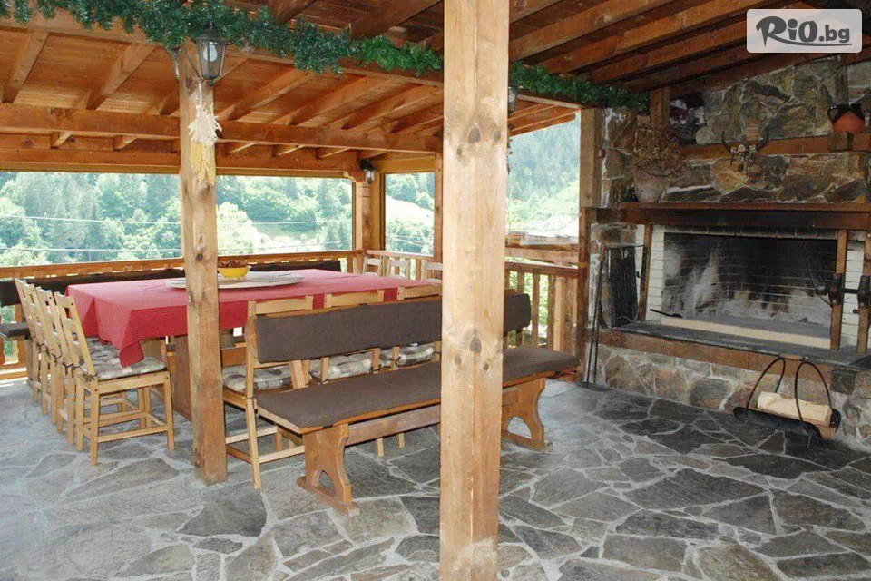 • Пред къщата има голяма веранда, от която се разкрива невероятна планинска гледка. Може да се използва целогодишно, като предоставя на гостите възможност за създаване на топлина и уют посредством голяма камина. Към камината има водно колело, което се върти и дава възможност за самостоятелно приготвяне на чеверме;