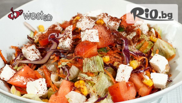 Салата с основно ястие или голяма пица по избор с 53% отстъпка за 6.90лв, от Бистро West Site