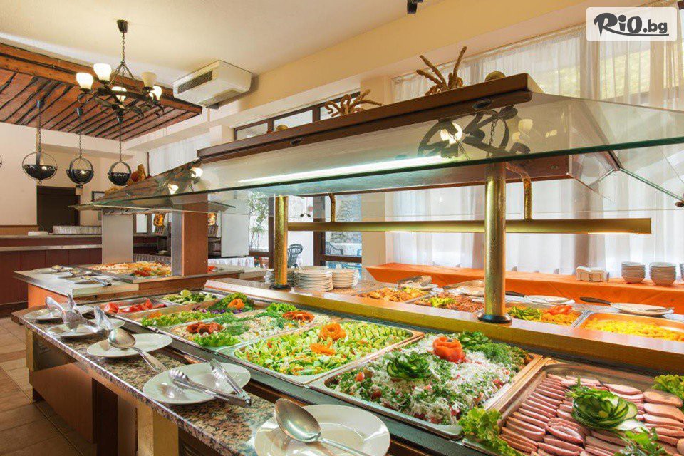 • Закуска (07:30 - 10:00 ч.) на блок маса: млечни продукти, колбаси, яйца, тестени закуски, зърнени закуски, плодове, заленчуци, течен шоколад, сладка и конфитюри, напитки (кафе, чай, вода, сок вишна и портокал).