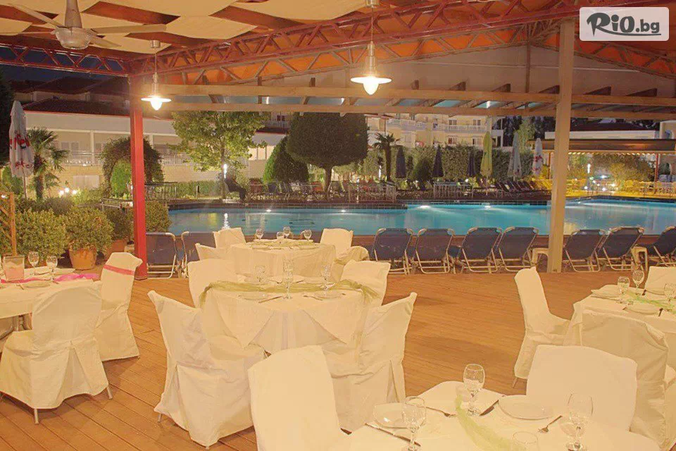 • Вечеря: 18:00-20:30 ч. Напитки: местна наливна бира, бяло, червено вино, безалкохолни напитки, сокове, храна на бюфет от средиземноморската и гръцка кухня (сладолед - неопакован, сезонни плодове, сладкиши).