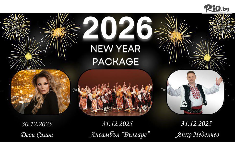 • 3 нощувки, 3 закуски на блок-маса, 3 вечери, от които една празнична Новогодишна вечеря с напитки на сервиз на 31.12.2025 , Брънч на 01.01.2026 от 09:00 до 14:00 часа, DJ парти от 30.12.2025 до 01.01.2026 г.,