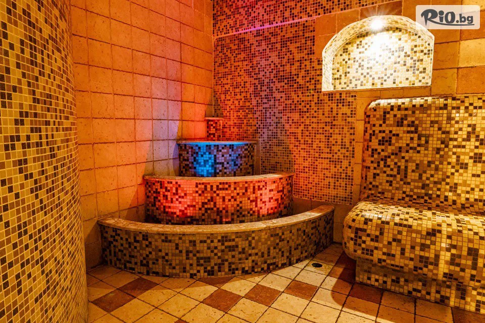 • Ползване на закрит минерален басейн в гръцки стил с гейзер и джетове за масаж на тялото;