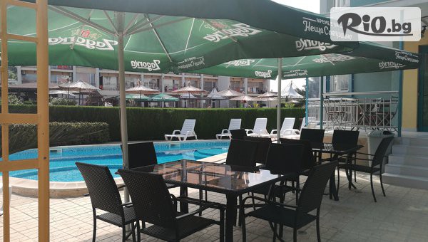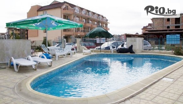 Август на море в Обзор! Нощувка със закуска и възможност за обяд и вечеря + басейн, шезлонг и чадър, от Хотел Сания