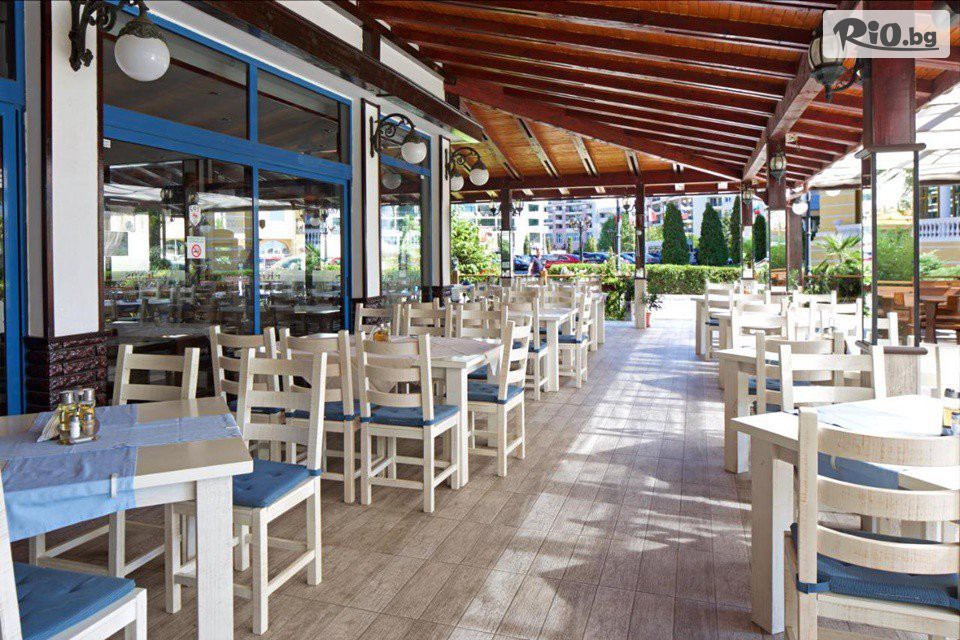 • Закуска /07:30 - 10:00ч./ - на бюфет в основен ресторант - богата селекция от ястия, пресни плодове, зеленчуци, сладкиши, топли напитки, вода и разнообразие от освежаващи сокове.