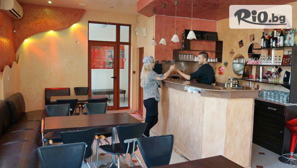 • Закуска: 08:00-10:00ч. - студени и топли напитки, яйца, млечни продукти, колбаси, тестени изделия, сладки, соленки и др.