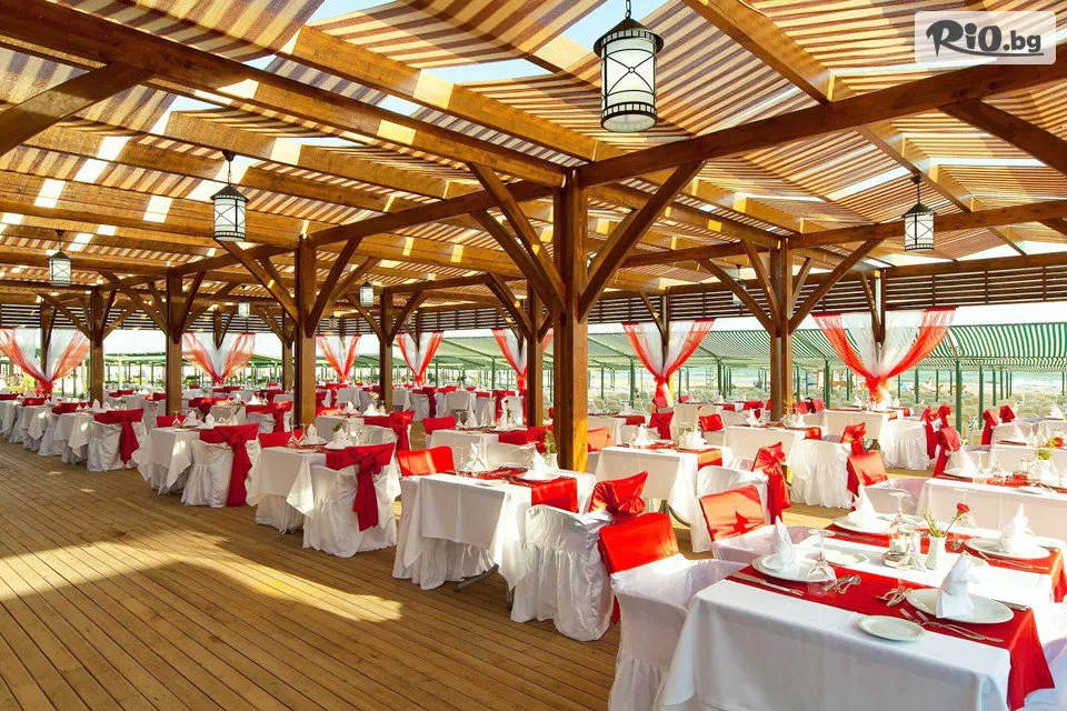 Хотелът се намира на първа линия със собствен пясъчен плаж с награда син флаг. Разполагате с бар на плажа. Шезлонги, чадъри и плажни кърпи - безплатни. През лятото на плажа се прави дискотека, а зимата в бар Компас.