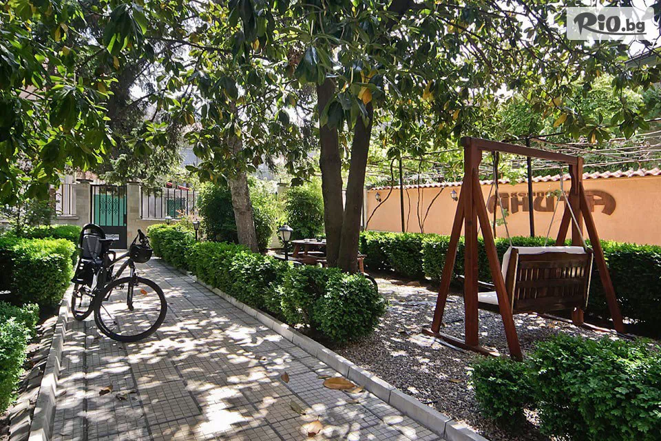 Между двете къщи се намира лятната градина с пищна зеленина и 100 годишни дървета - магнолии, което е идеално място да се насладите на спокойствие на чаша кафе, да утолите жаждата с напитка или да си изберете от менюто с десерти на ресторанта. Същевременно любезният персонал е на разположение в отговор на Вашите изисквания, да Ви помага и информира за забележителностите на района и предпочитани туристически дестинации през целия Ви престой.