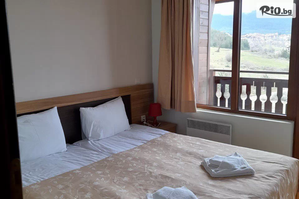 Студиата и апартаментите са оборудвани с кухненски бокс, кабелна телевизия и балкони, от които се открива красива панорамна гледка към гр. Банско и Пирин планина. Двойната стая е едно помещение - с възможност за настаняване на 2-ма души. Баня с душ -кабина, TV и мини бар.