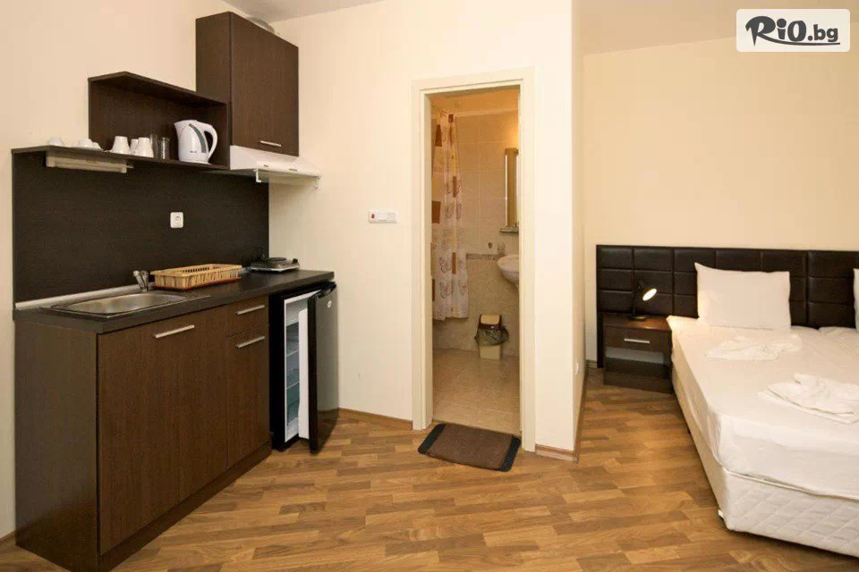 • Студиата разполагат с три единични легла, две от които събрани в спалня, със възможност за допълнително легло (подохно);