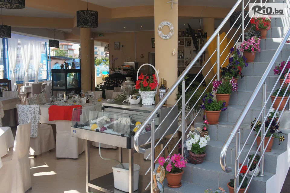 • ресторант и бар към него с капацитет 82 места, разположени в предната част на хотела. Работното време е от 8:30 до 23:00 часа.