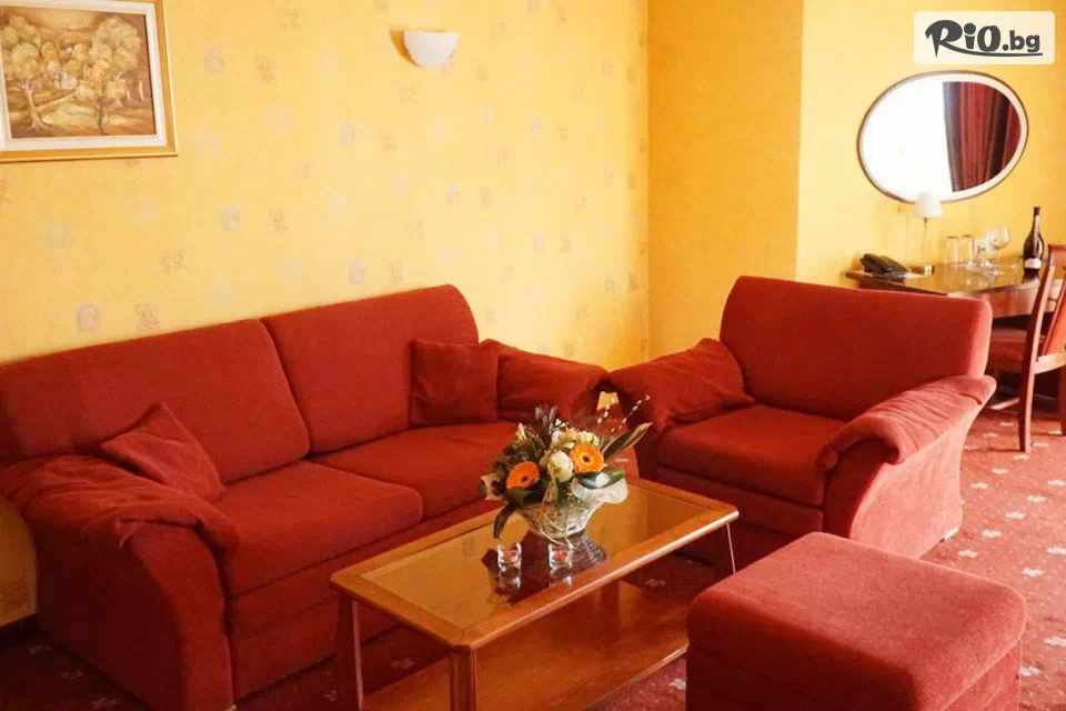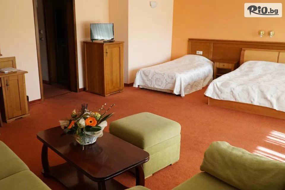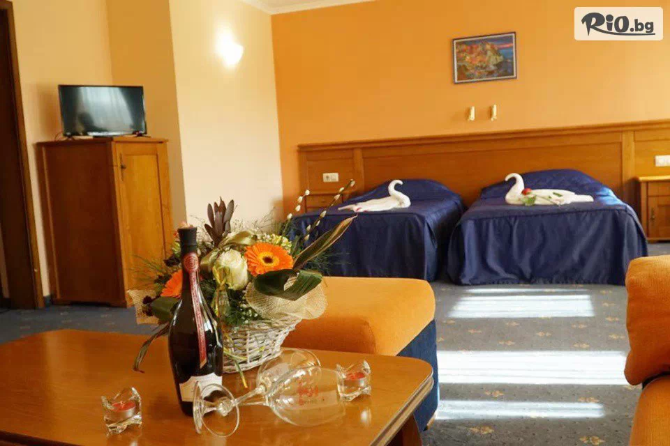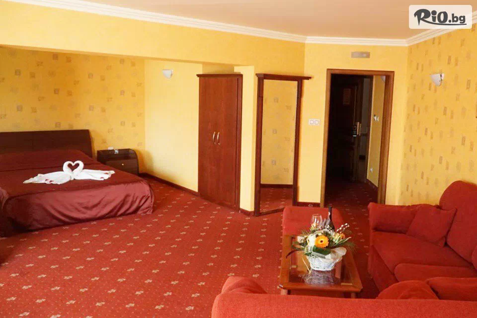 • Двойна стая Лукс: оборудвана с климатик, телефон, телевизор с кабелна телевизия, мини бар, кабелен интернет, 2 легла, баня с вана, тераса, разтегателен диван (подходящ за настаняване на две деца или 1 възрастен);