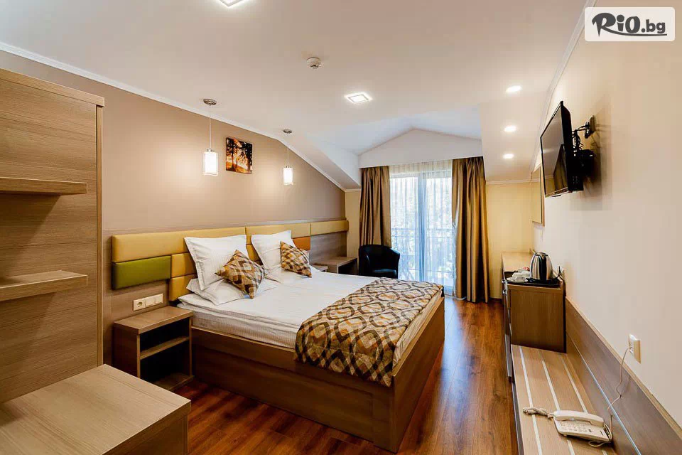 От просторната тераса на стаята си можете да се насладите на спокойствието на градчето и прекрасния парк или гледката към Средна гора. Чистият въздух допринася за вашата пълна наслада.