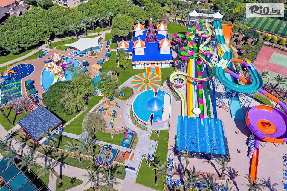 На разположение на гостите са голям басейн, басейн с водни пързалки, релакс басейн, активити басейн (организират се игри в басейна), 3 детски басейн, закрит басейн с детска част.