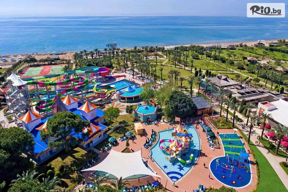 IC Hotels Green Palace 5* предлага богата All Inclusive концепция с разнообразие от барове и ресторанти, ежедневна анимационна програма, възможности за развлечение и спорт, както за малки, така и за големи. Хотелският комплекс е построен през 2003 г. и заема обща площ от 93 000 кв.м. Частични реновации са правени през 2015 г. (основен ресторант; стаи), 2018 г. (аквапарк, мини клуб, двата снек ресторанта), 2019 г. (лоби).