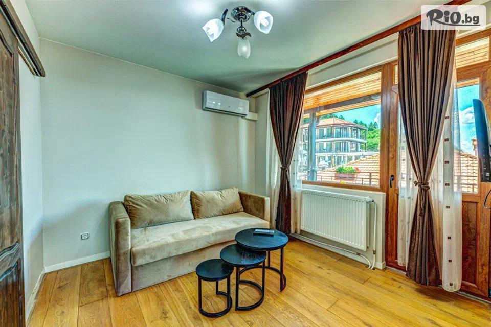 Хотелската част се състои от четири къщички с възможност за настаняване на 38 души (с опции до 42 души) в 7 двойни стаи и 6 апартамента. Всички стаи и апартаменти са със собствен санитарен възел, LED-телевизори и интернет. Къщата за гости има собствен паркинг и видео наблюдение