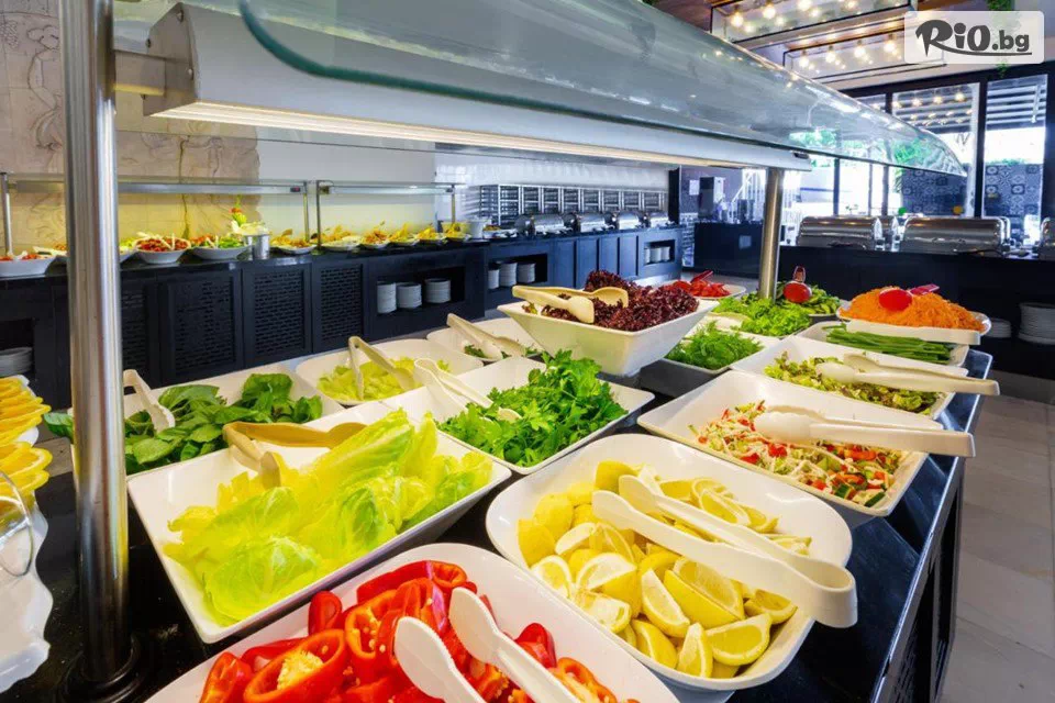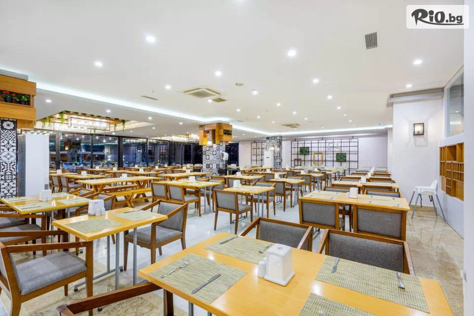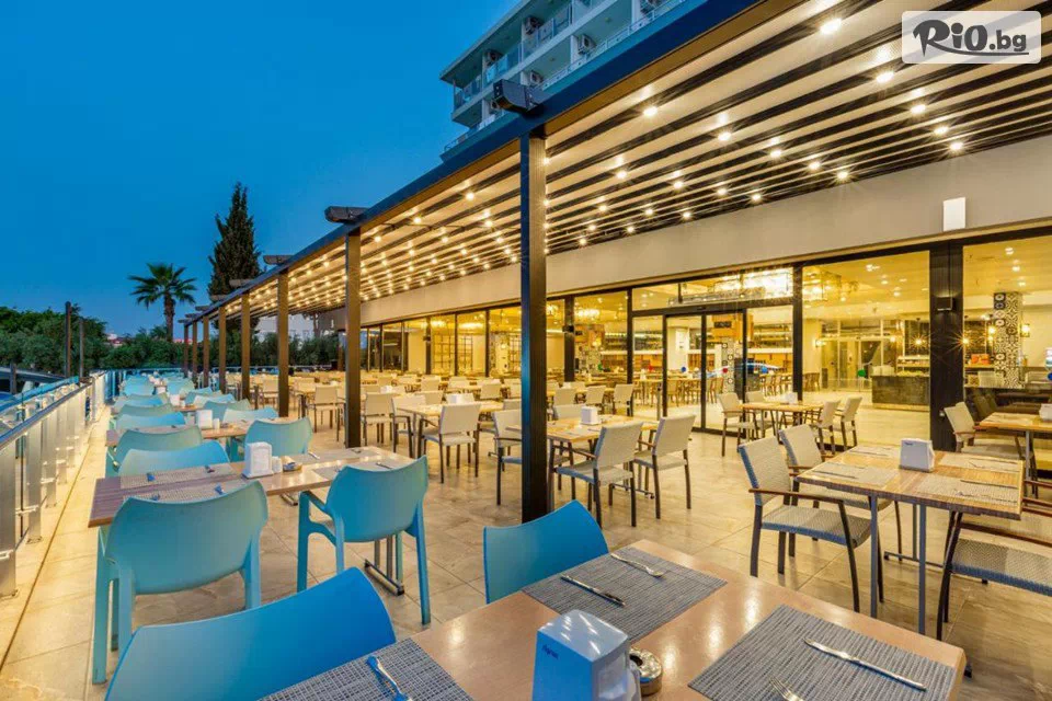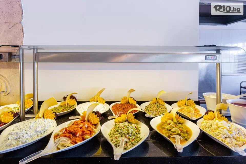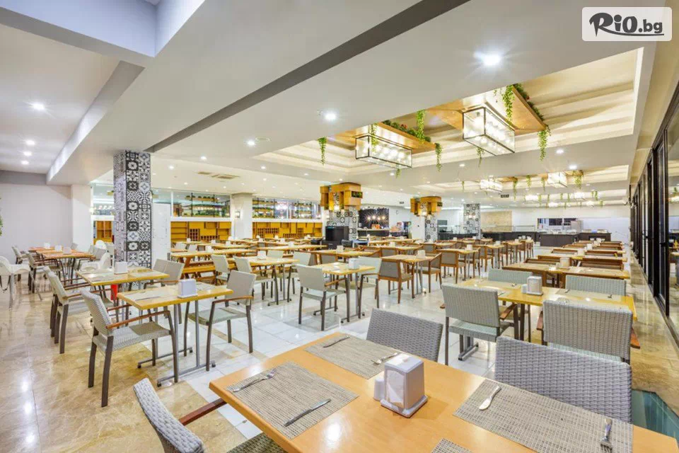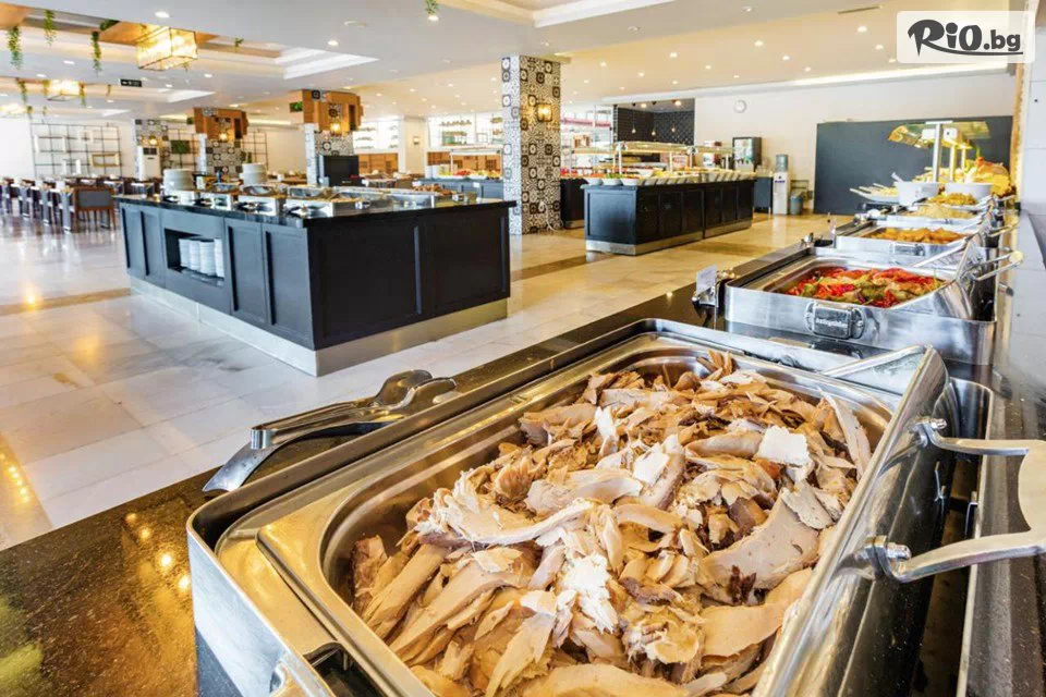 Основният ресторант на хотела сервира закуска, обяд и вечеря на шведска маса. Има 4 бара, разположени на плажа, до басейна, във фоайето и дискотеката. През целия ден се предлагат различни видове леки закуски, а а ла карт ресторантът е отворен за вечеря.
