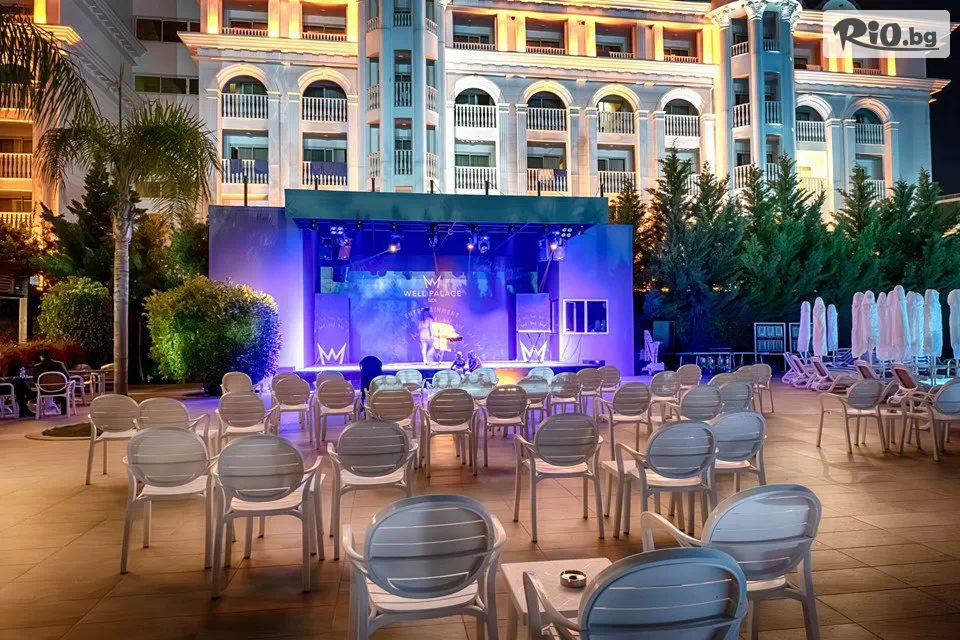 На територията на Well Palace Side 5* има основен ресторант, а-ла-карт ресторанти (с предварителна резервация), барове, дискотека, два открити басейна и джакузи, три водни пързалки, SPA център с турска баня, парна баня и сауна, фитнес център, спортни и развлекателни дейности, конферентна зала, безплатен безжичен интернет на територията на целия хотел.
