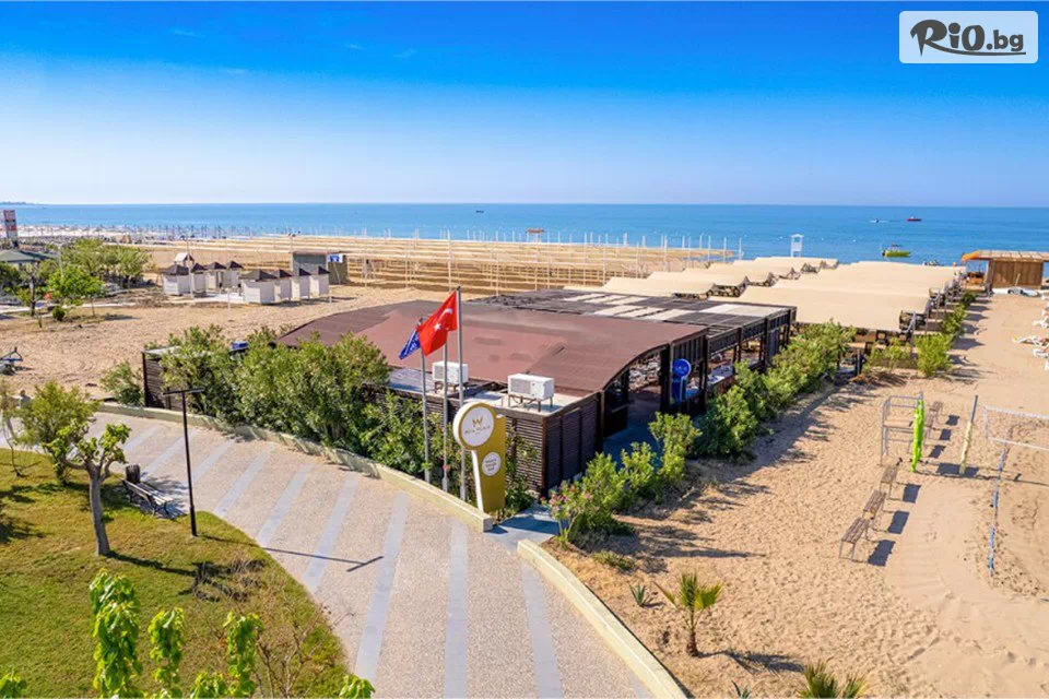 Well Palace Side 5* разполага със собствена пясъчна плажна ивица на 700 метра от сградата на хотела, до която е осигурен транспорт посредством безплатен шатъл бус. Безплатно ползване на чадъри, шезлонги и матраци на плажа и при басейна.