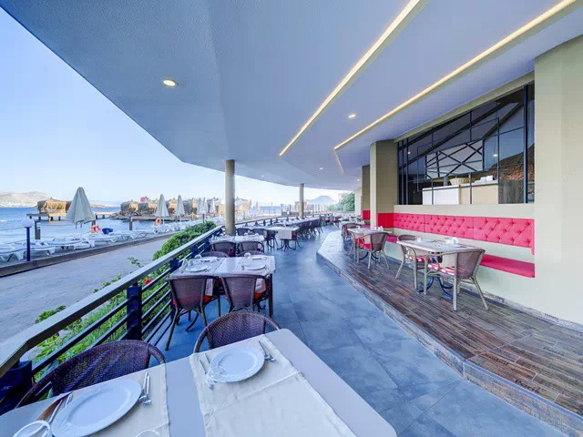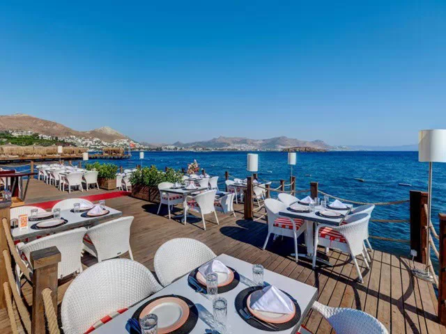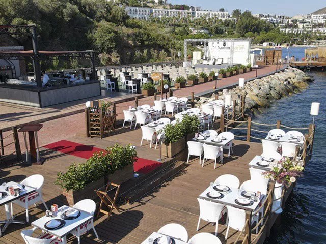 На територията на Yasmin Bodrum Resort 5* има основен ресторант, 3 а-ла-карт ресторанта (морски, турски, италиански - безплатни при едноседмичен престой), цели 7 бара и дискотека.