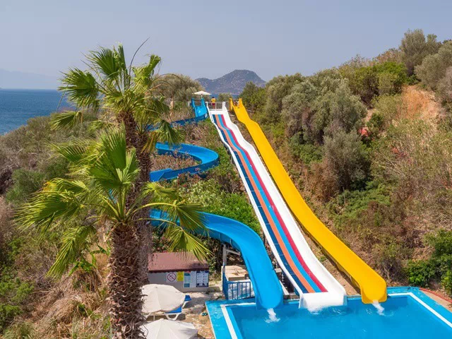 На разположение на гостите са 3 открити басейна, 1 водна пързалка, закрит басейн, Спа център.