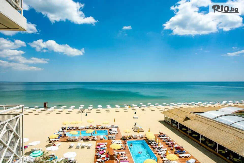 • Безплатно ползване на 1 чадър и 2 шезлонга на плажа (на стая), считано от 3-ти ред откъм морето до плажната алея (до изчерпване на наличните);