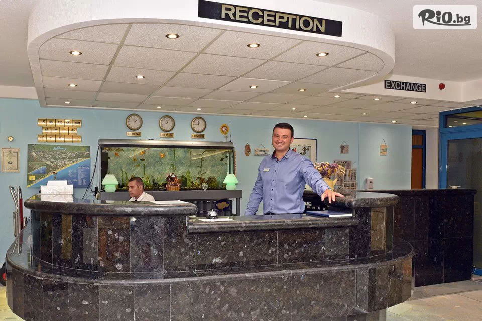 • Welcome drink посрещане - пенливо вино за възрастни и натурален сок за деца (произведени от био градините на Албена);