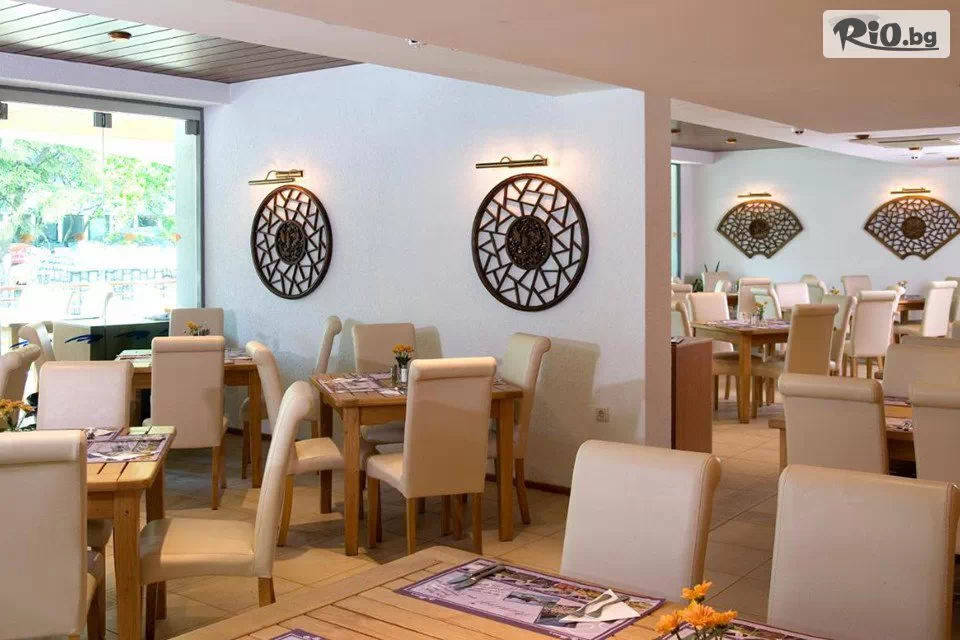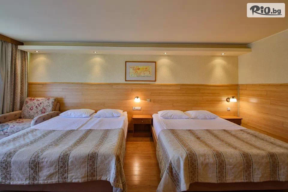 • Безплатно ползване на 1 чадър и 2 шезлонга на плажа (на стая), считано от 3-ти ред откъм морето до плажната алея (до изчерпване на наличните);