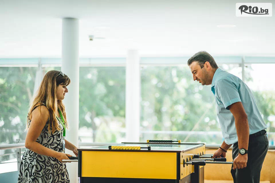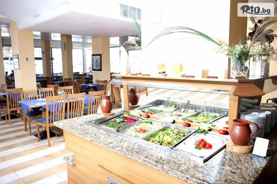 • Безплатно ползване на 1 чадър и 2 шезлонга на плажа (на стая), считано от 3-ти ред откъм морето до плажната алея (до изчерпване на наличните);