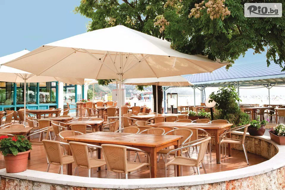 • Безплатно ползване на 1 чадър и 2 шезлонга на плажа (на стая), считано от 3-ти ред откъм морето до плажната алея (до изчерпване на наличните);