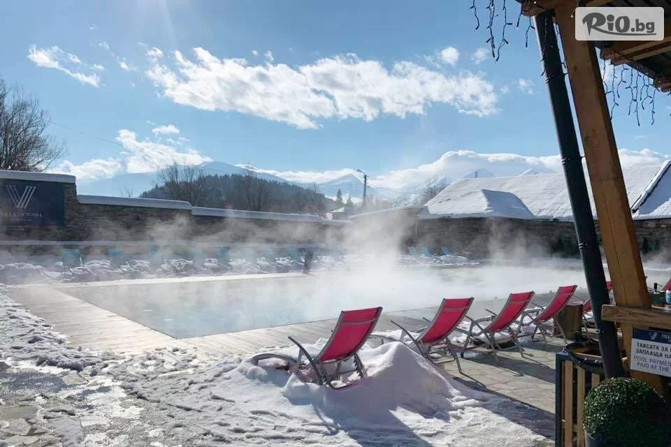 Купи ваучер Делнична СПА почивка във Вила Виктория Термал, село Баня край Банско! Нощувка със закуска и вечеря + външен топъл минерален басейн и СПА до края на Март