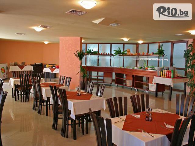 • Всички хранения се сервират в основния ресторант, който е разположен в блок А. Гостите могат да ползват покритата тераса към този ресторант, както и откритата тераса на летния ресторант до големия басейн.