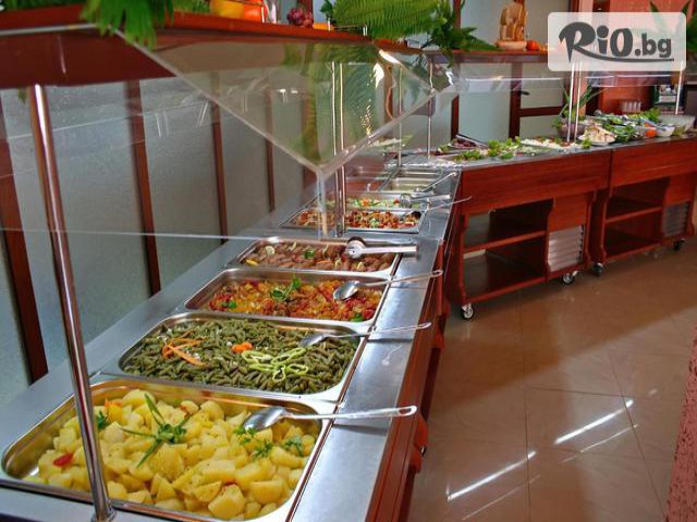 • Закуска: 08:00 - 10:00 часа на блок маса. Предлага богато разнообразие от колбаси, сирена, яйца, баница, печива, кроасани, зърнени закуски, макарони, плодове, кексове и др. Напитки по време на закуската: топли напитки от кафе-автомат - кафе инстантно, мляко с кафе, капучино, топъл шоколад, мляко, чай (билков, черен), Вода от диспенсър и сокове от машина