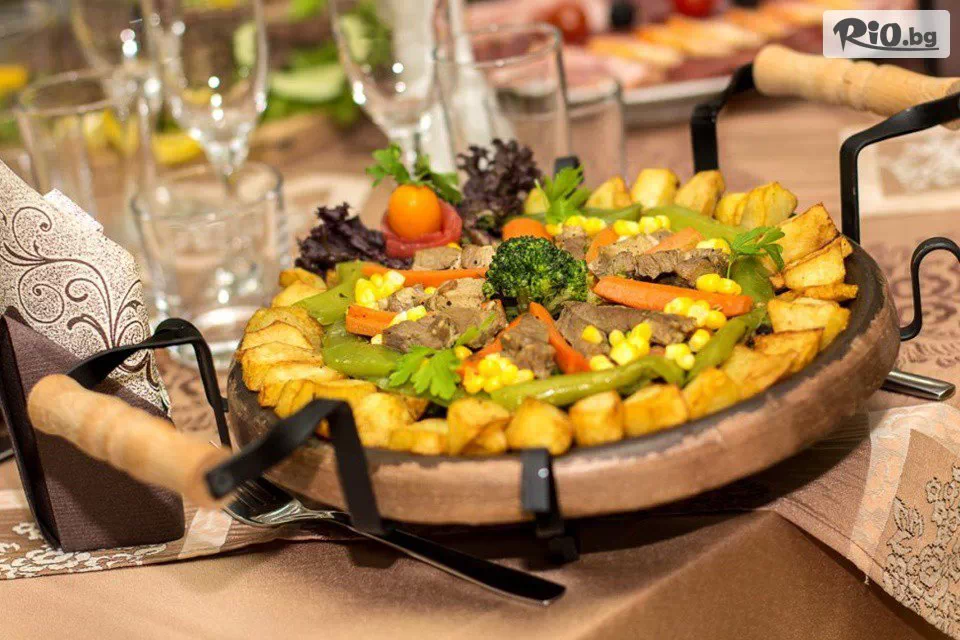• Вечерята включва салата, основно ястие (скара) и десерт.