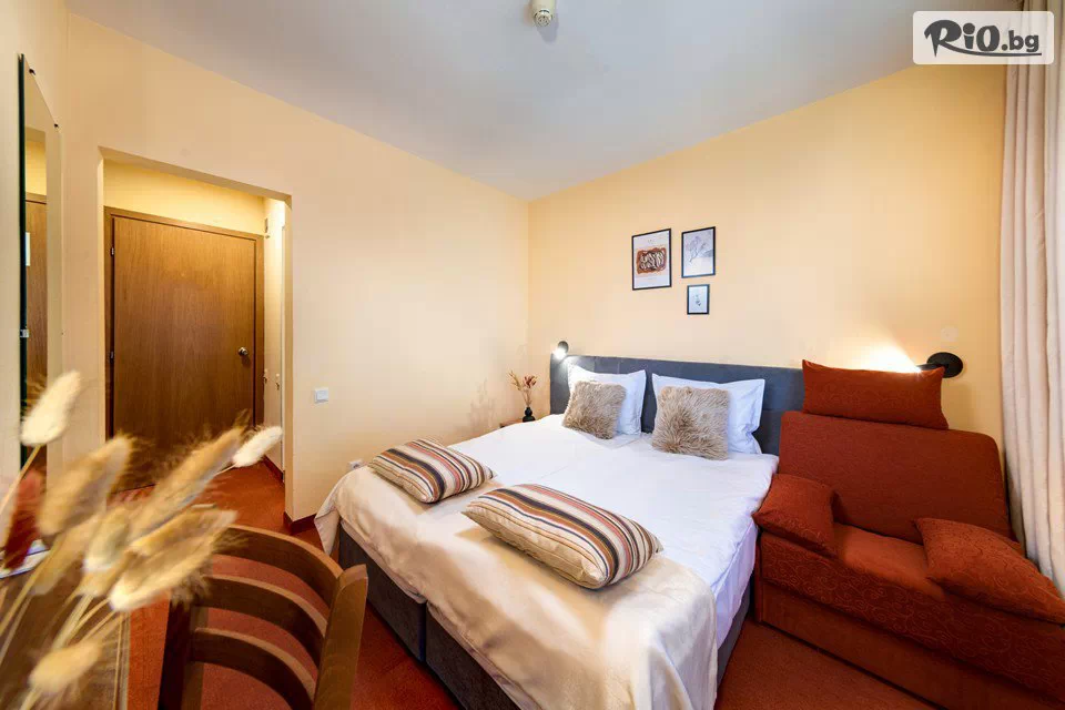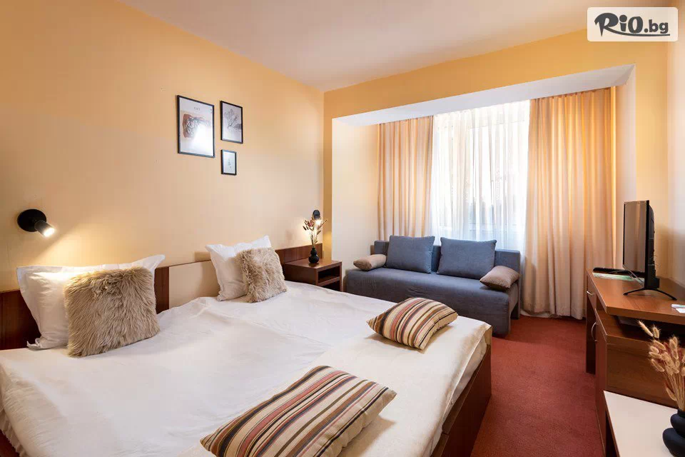 • За едно дете от 12 до 17.99 г., настанено на допълнителен разтегателен фотьойл/диван, се заплащат 25,57 €/50лв на ден, на база пакета.