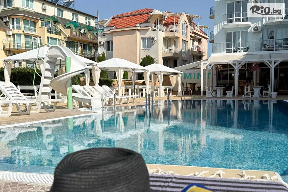 Морска приказка на крачки от брега в Семеен хотел Минт, Равда! От 7 Юли до 25 Август: Нощувка със закуска, обяд и вечеря + басейн, чадър и шезлонг
